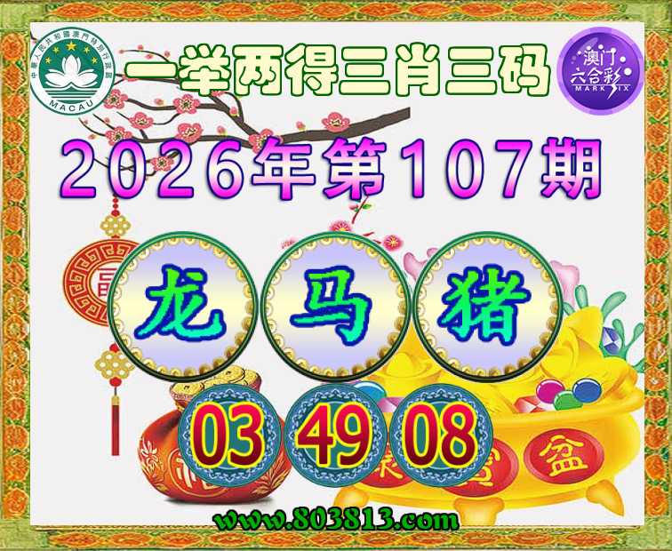 107期:『一举两得』 🍙三肖三码🍙【龙马猪】【03.49.08】开:00准